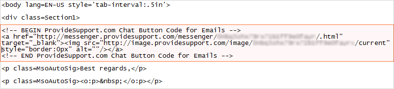 <body lang=EN-US link=blue vlink=purple style=’tab-interval:.5in’><div class=Section1> Fügen Sie den Code bitte an der Stelle ein, an der der Chat-Button erscheinen soll. Beachten Sie dabei auch die ursprüngliche HTML-Formatierung Ihrer Signatur.