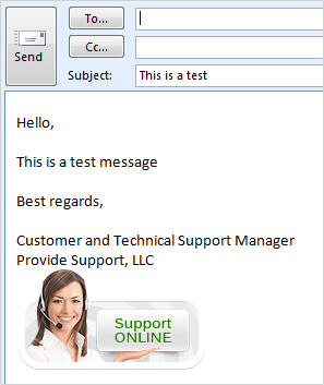 Bitte beachten! Animierte GIFs, sowie Flash-Bilder werden von Outlook 2007 und höher nicht unterstützt. Bei animierten GIFs geht die Animation verloren, wenn Ihr Chat-Button damit in diesen E-Mail-Clients angezeigt wird.